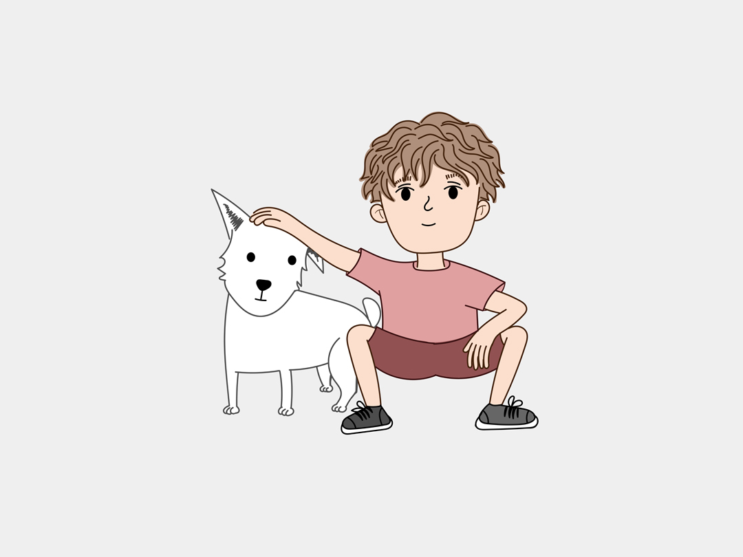강아지 머리를 쓰다듬는 소년 무료 이미지