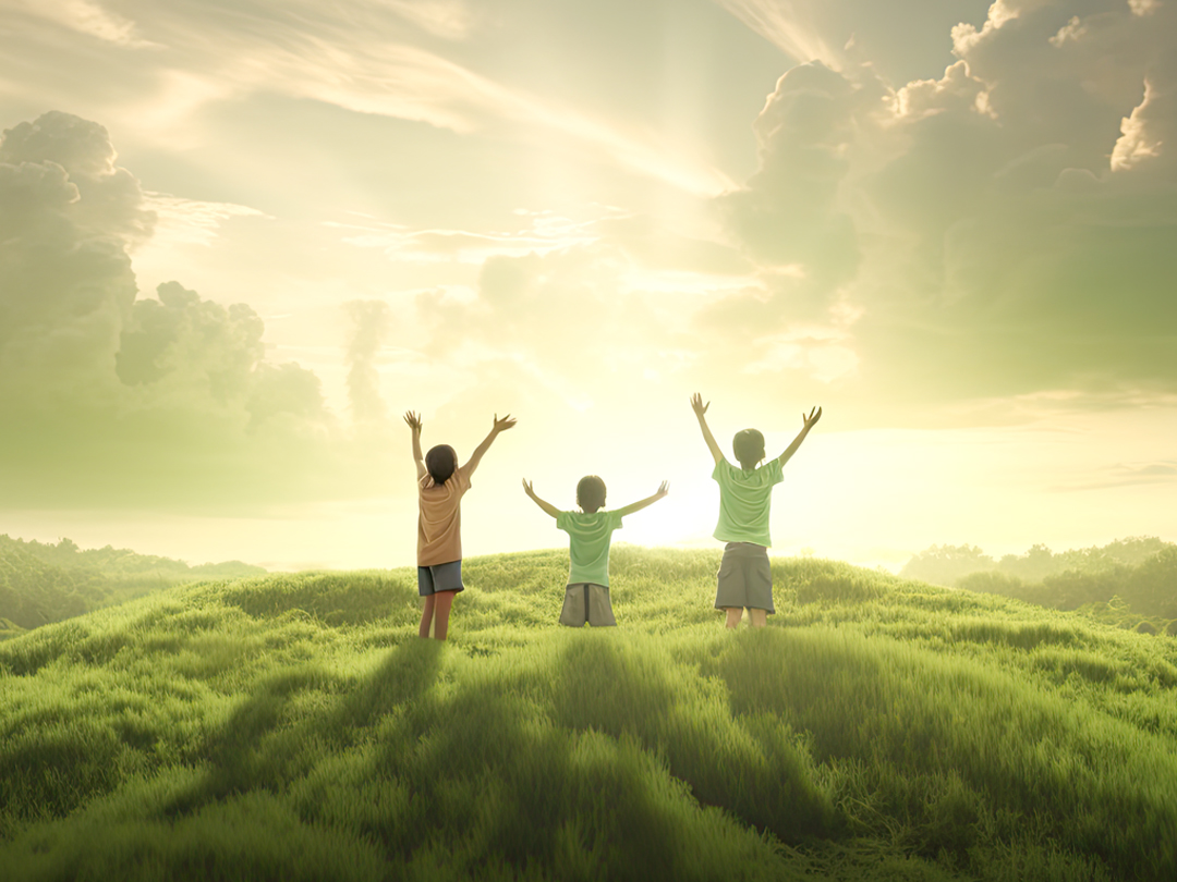 하늘을 향해 두 팔 벌린 아이들