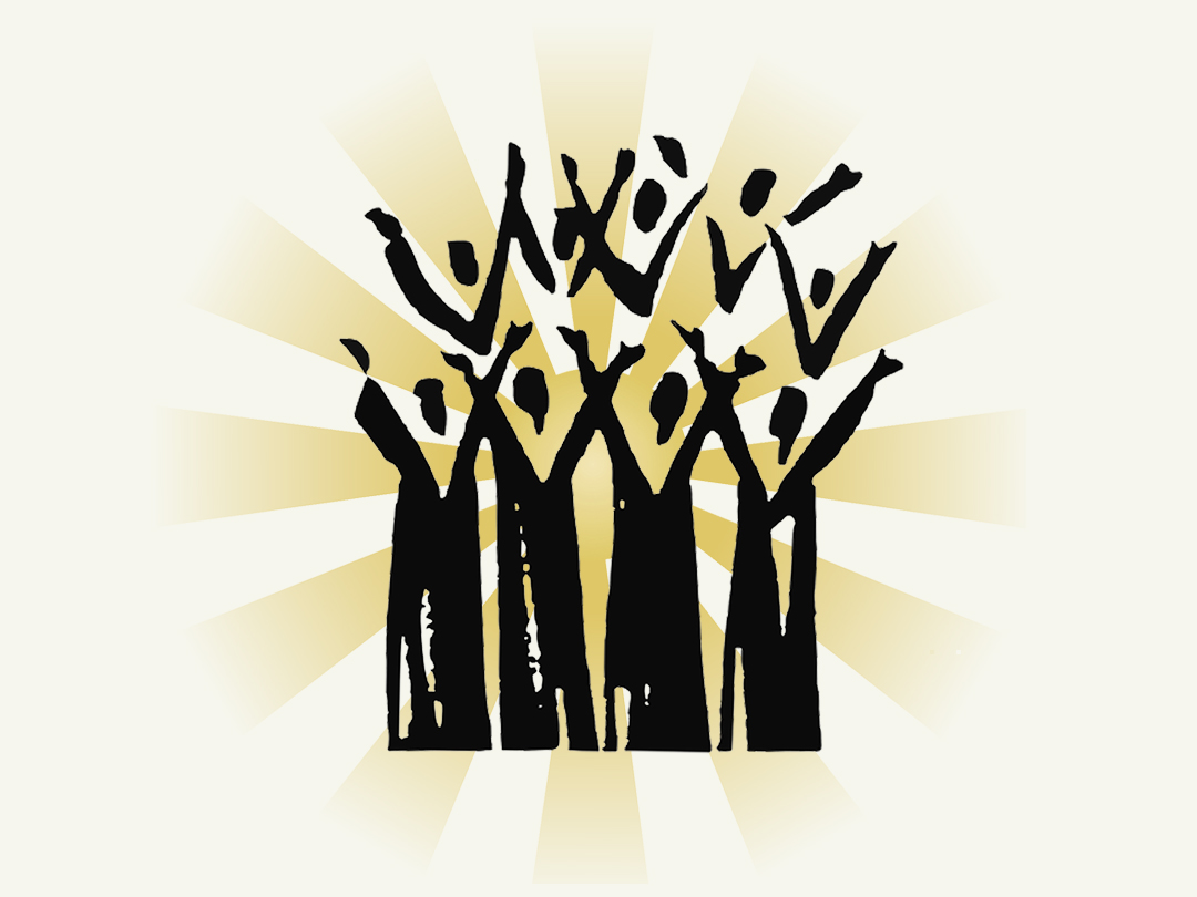 합창하며 기뻐하는 사람들