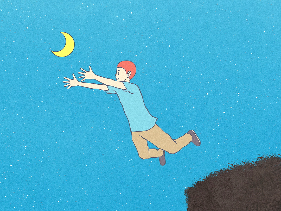 달을 향해 손을 뻗고 달려가는 소년