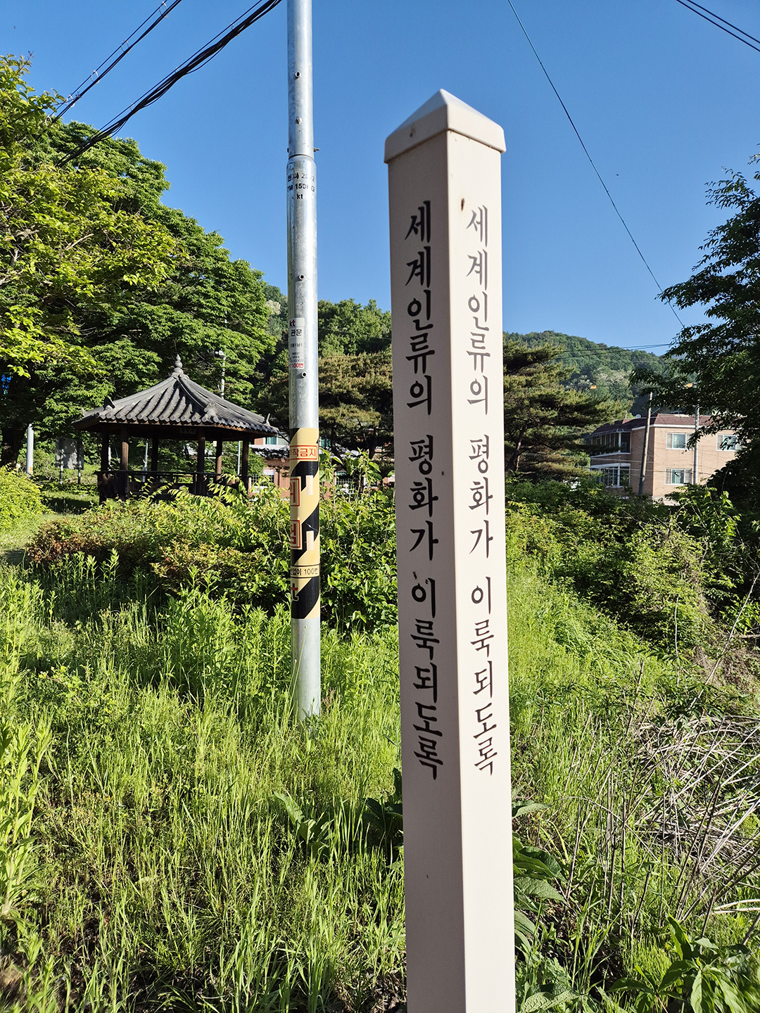 - 길을 가다가 세계 평화를 기원하는 기둥을 우연히 발견했어요. 누가 이런 것을 여기에 세웠을까요? 모든 이들의 평화를 위해 화살기도하도록 이끌어준 기둥에게 감사합니다.