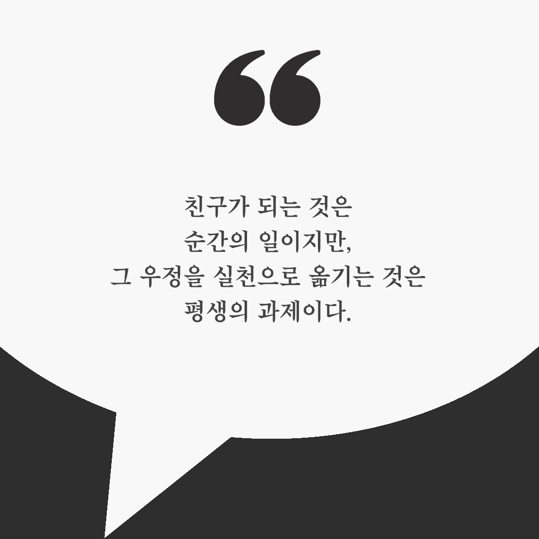 친구가 되는 것은 순간의 일이지만, 그 우정을 실천으로 옮기는 것은 평생의 과제이다.