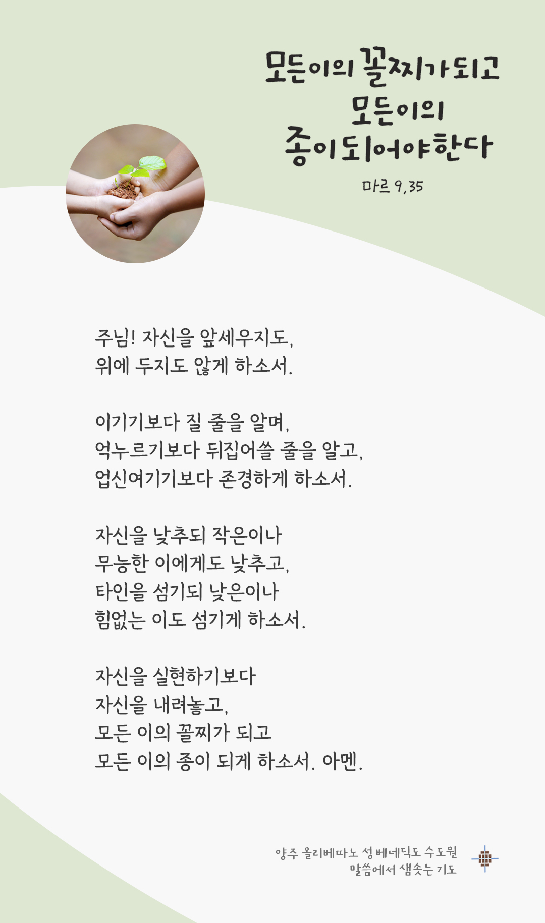 모든 이의 꼴찌가 되고 모든 이의 종이 되어야 한다 (마르 9,35).