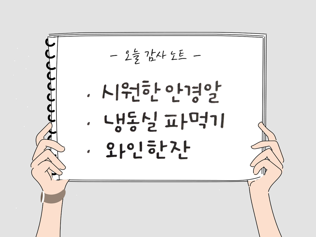 긍정적인 마음가짐으로 감사할 수 있는 것들을 발견하고, 그 감사함을 메모하는 과정이 바로 감사일기의 매력 같아요.