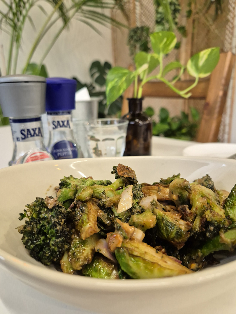 전주는 어느 음식점에 가도 정말 다 맛있습니다. 브로콜리, 적양파, 방울양배추, 호두가 들어간 웜샐러드와 진한 우유가 들어간 플랫 화이트 커피 한 잔의 행복함에 감사합니다.