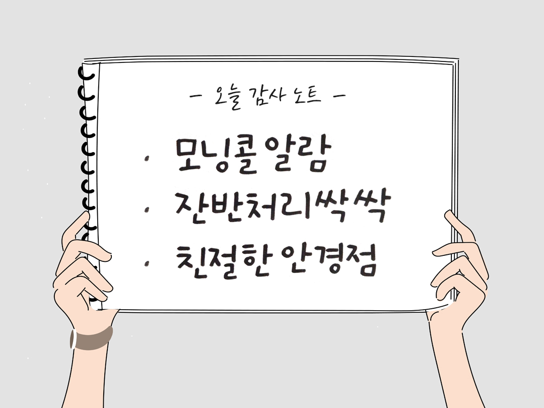 긍정적인 마음가짐으로 감사할 수 있는 것들을 발견하고, 그 감사함을 메모하는 과정이 바로 감사일기의 매력 같아요.