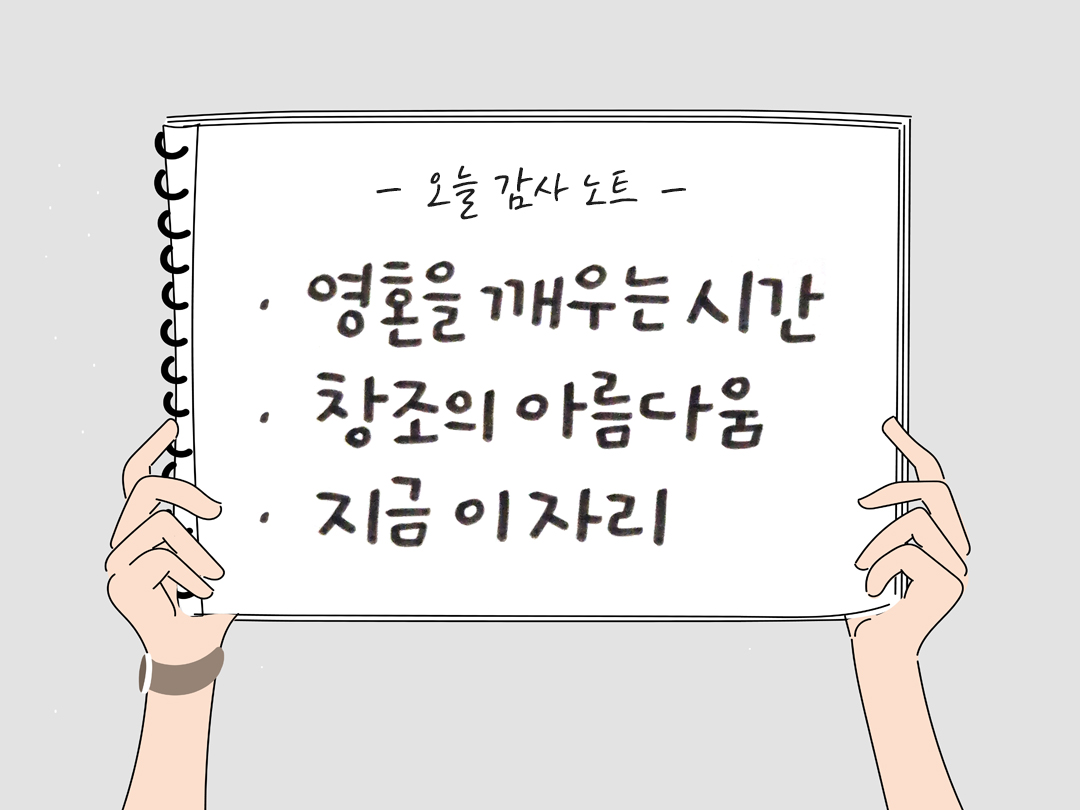 - 감사하는 순간마다 휴대폰에 메모하고 규칙적인 시간을 정해 감사노트에 옮겨 적기
