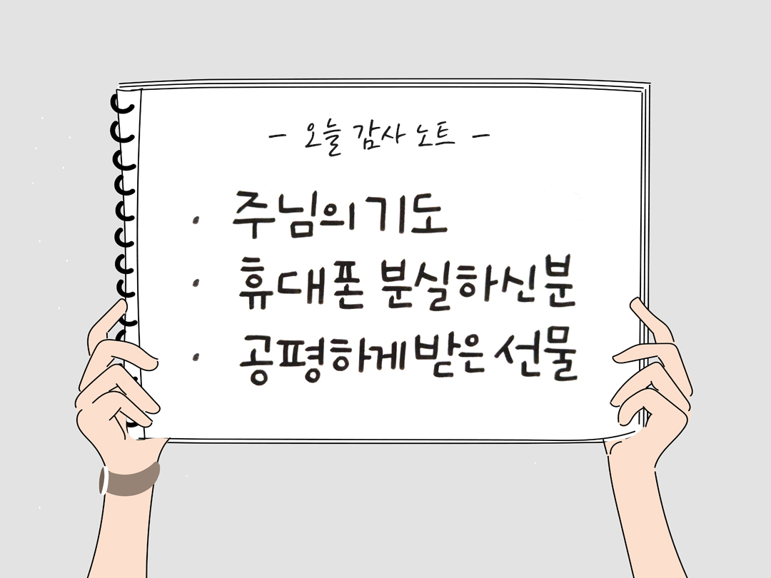 - 감사하는 순간마다 휴대폰에 메모하고 규칙적인 시간을 정해 감사노트에 옮겨 적기