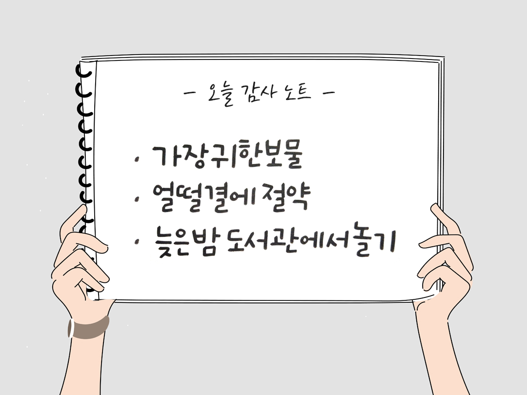 긍정적인 마음가짐으로 감사할 수 있는 것들을 발견하고, 그 감사함을 메모하는 과정이 바로 감사일기의 매력 같아요.