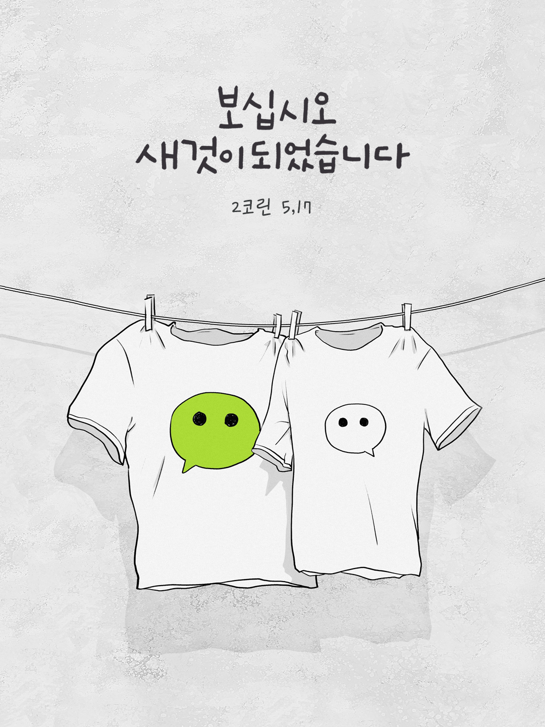 오늘 말씀카드 배경이미지 티셔츠 두 장을 보니, 오래전에 옷을 색깔별로 두 벌 사서 입었던 기억이 떠오릅니다. 아무리 마음에 드는 디자인이라도 결국 색상에 따라 자주 입는 옷과 덜 입는 옷으로 나눠져서 그 이후로는 색깔별로 옷을 사지 않게 되더라고요.