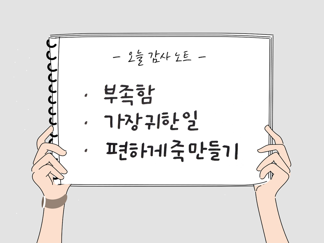 긍정적인 마음가짐으로 감사할 수 있는 것들을 발견하고, 그 감사함을 메모하는 과정이 바로 감사일기의 매력 같아요.