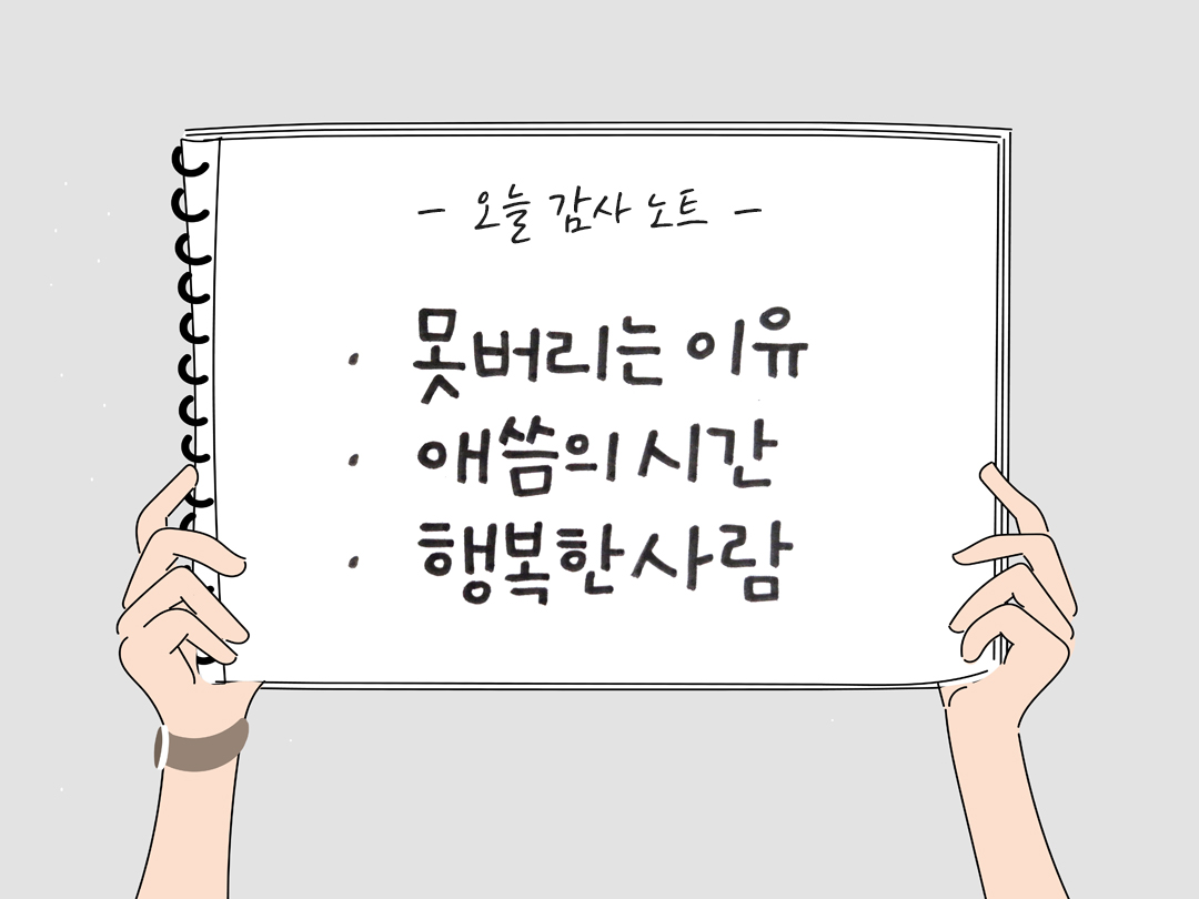 감사노트를 다시 꺼내 보지 않아도 상관없어요. 떠오르는 대로 감사한 것들을 메모하는 순간 일어나는 마음의 변화만으로도 충분히 행복하니까요.