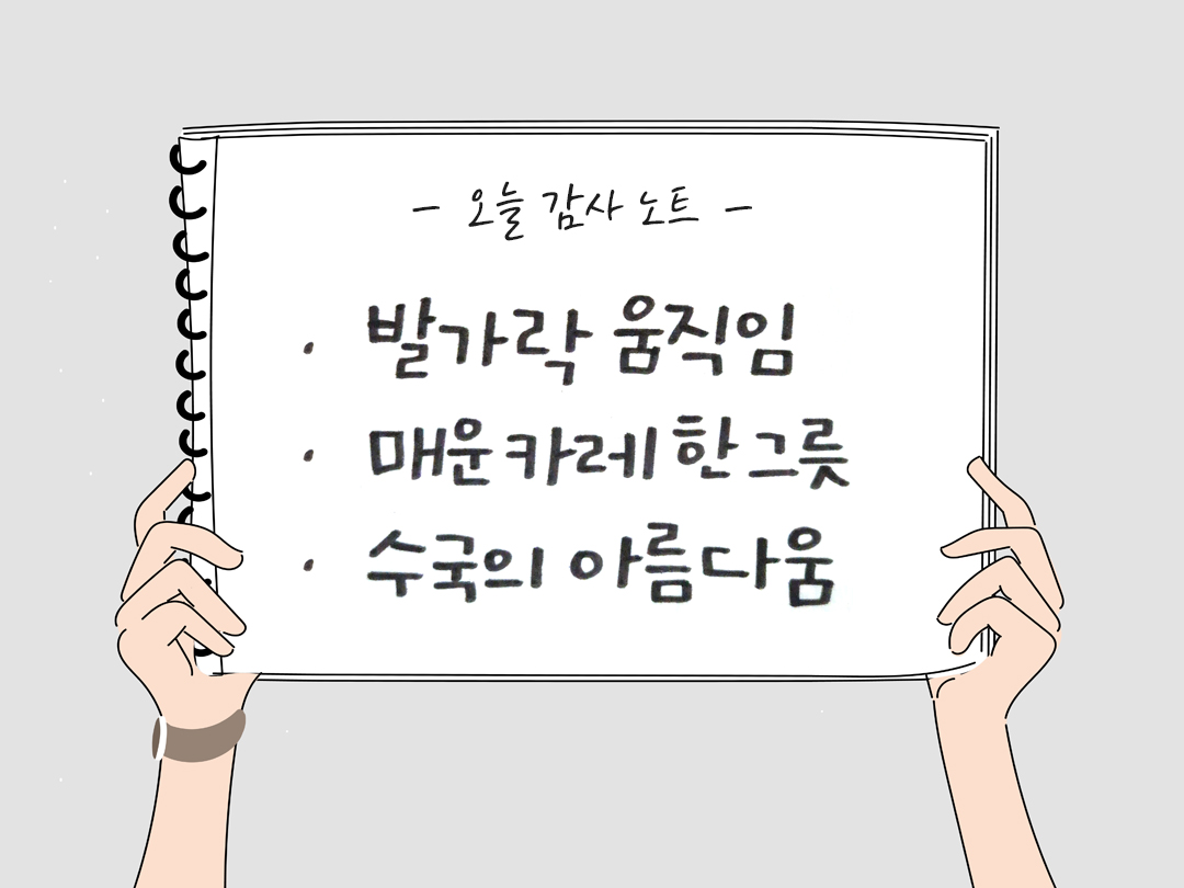 긍정적인 마음가짐으로 감사할 수 있는 것들을 발견하고, 그 감사함을 메모하는 과정이 바로 감사일기의 매력 같아요.