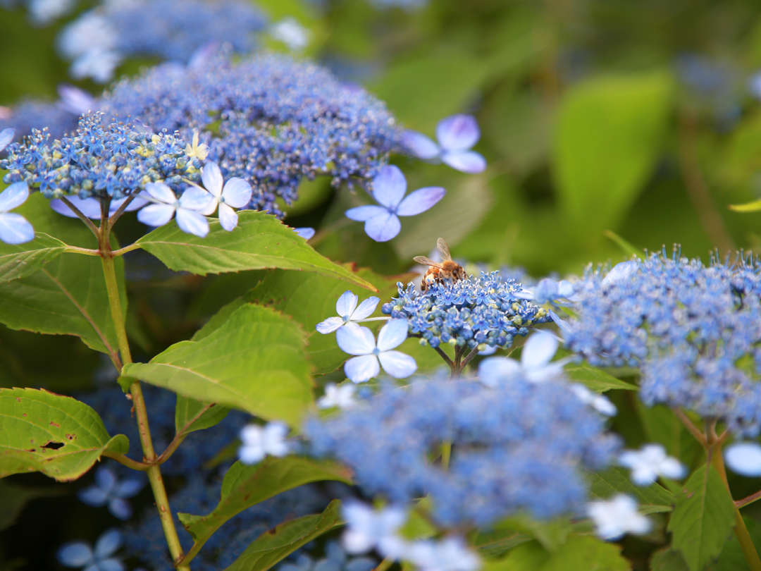 수국의 꽃잎처럼 보이는 헛꽃은 토양의 산성도에 따라 다양한 색상으로 피어납니다. 흙이 산성이면 파란색 꽃이 피고, 알칼리성이면 자주색 꽃이 핍니다.