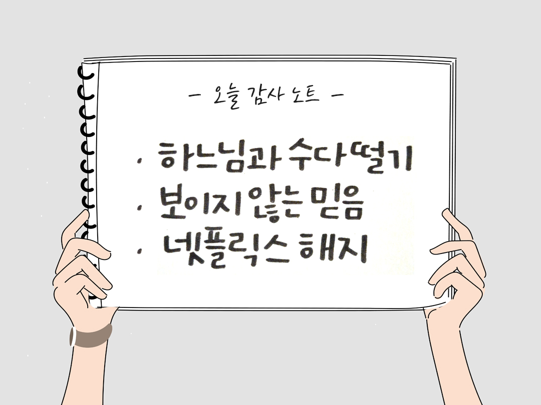 왜 넷플릭스 해지했냐는 친구의 질문에, 그분과 더 친해지기 위해 미디어 끊었다고 말할 수 있음에 감사합니다.