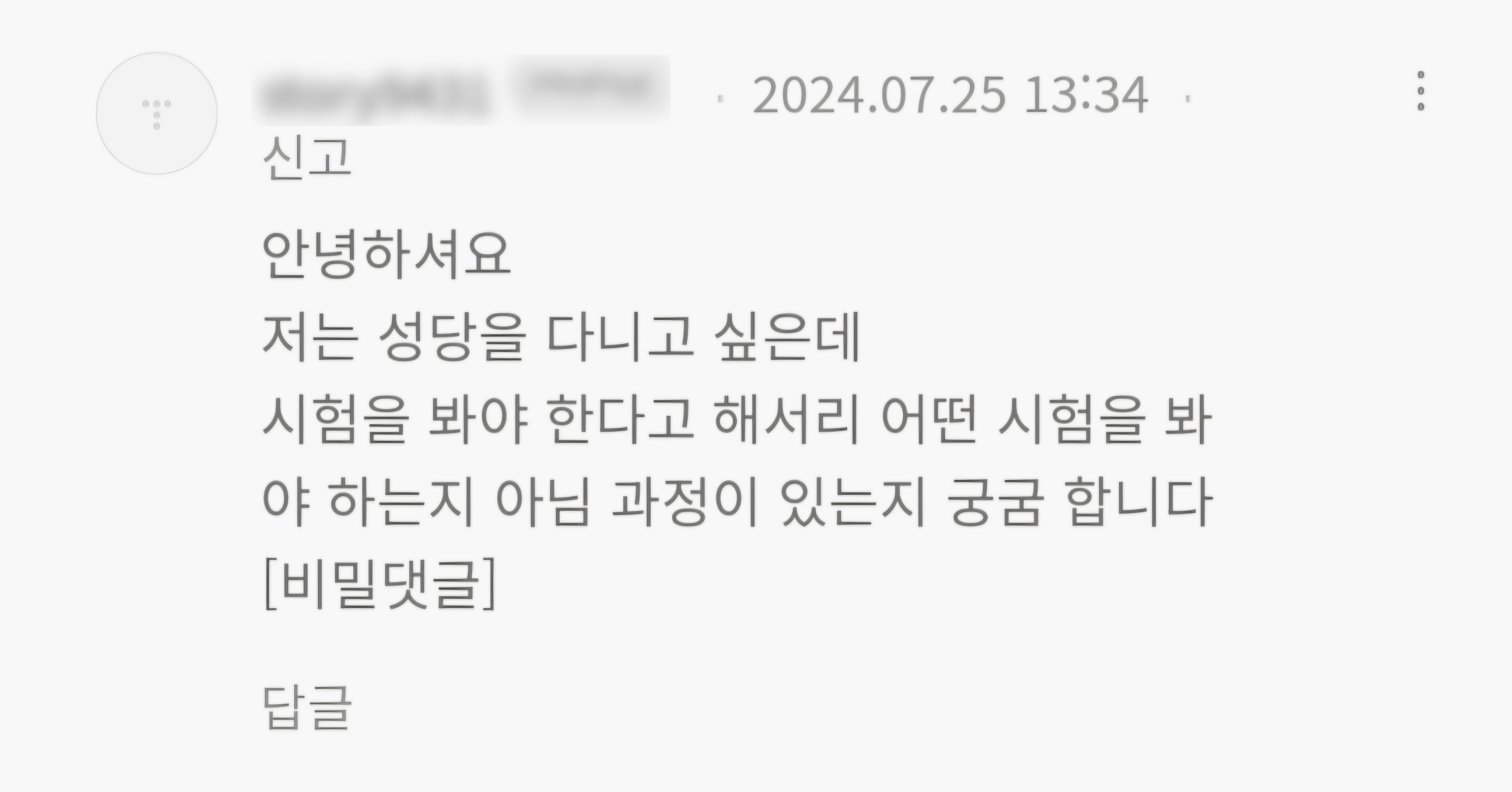 성당에 다니고 싶다는 이 댓글을 보고 놀랐어요.