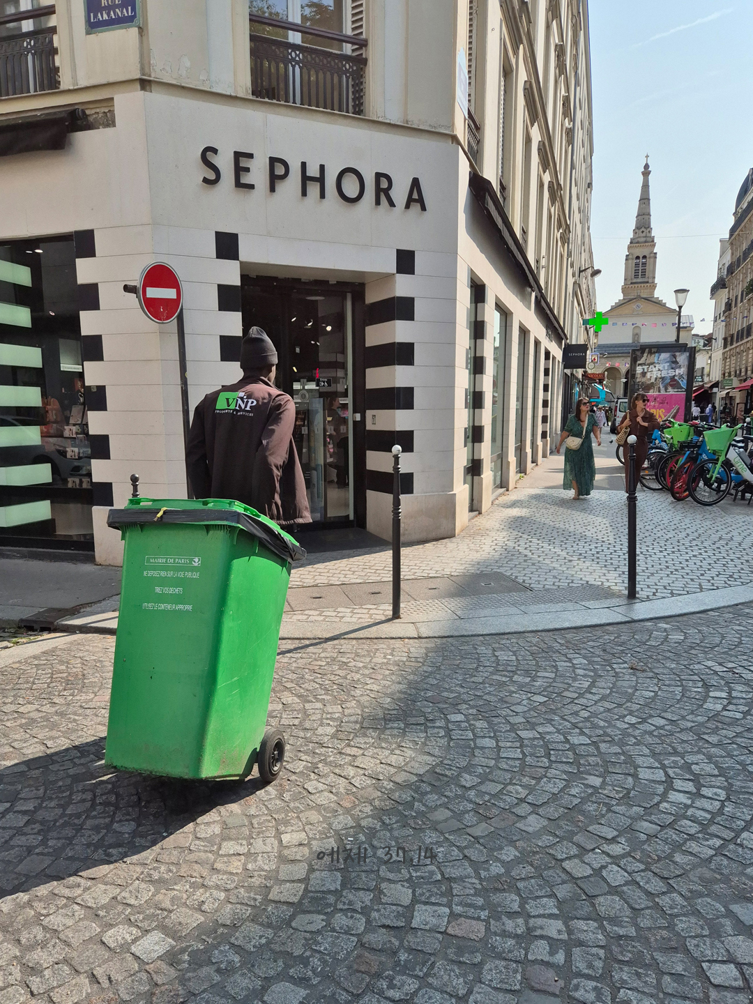 파리의 길에는 휴지통이 무척 많습니다. 화려한 관광지에 넘쳐나는 쓰레기 옆에서 묵묵히 일하며 파리의 아름다움을 지켜주는 숨은 주인공 청소부에게 감사합니다. - 소박함 속의 경건함