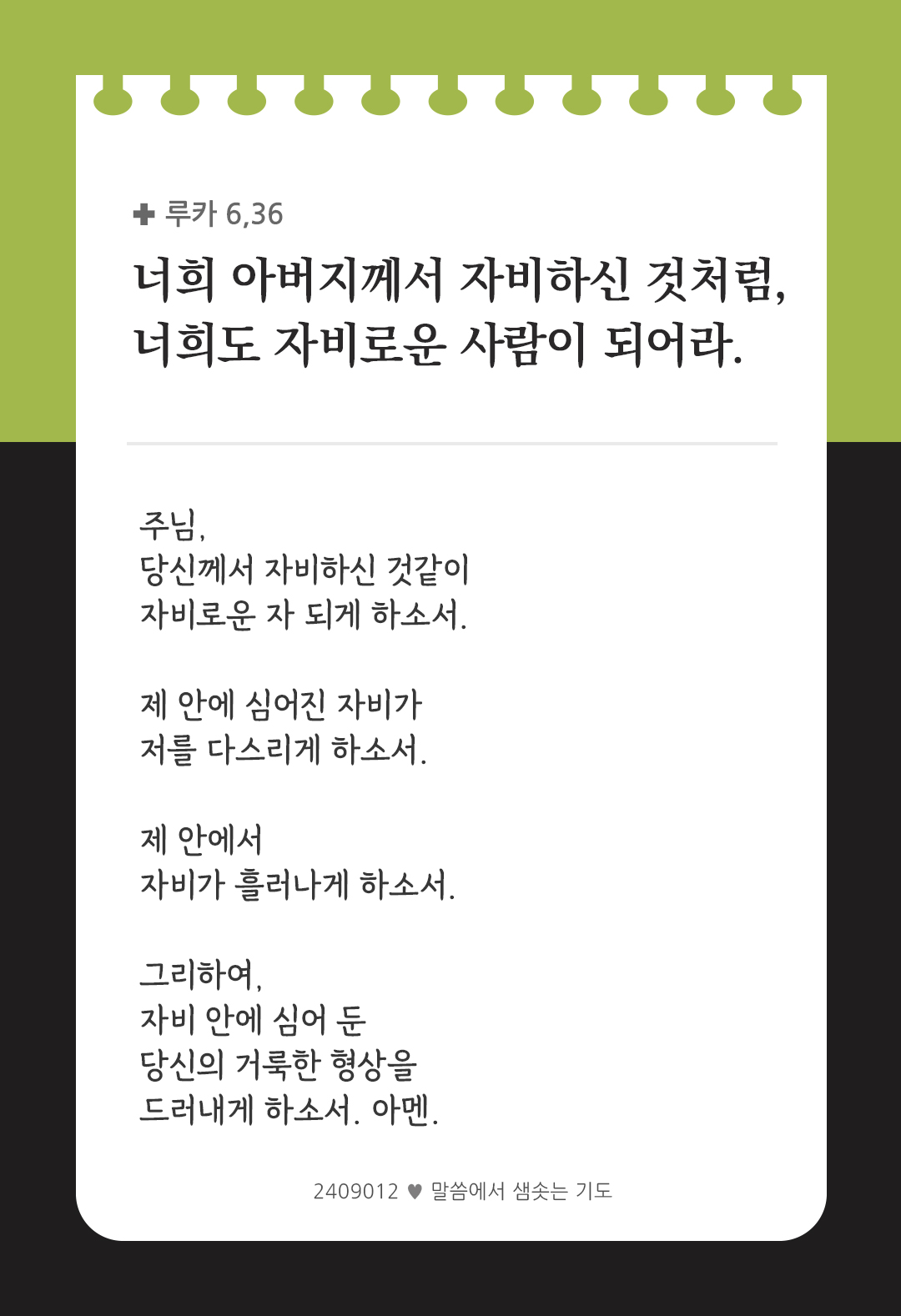 너희 아버지께서 자비하신 것처럼, 너희도 자비로운 사람이 되어라. (루카 6,36)
