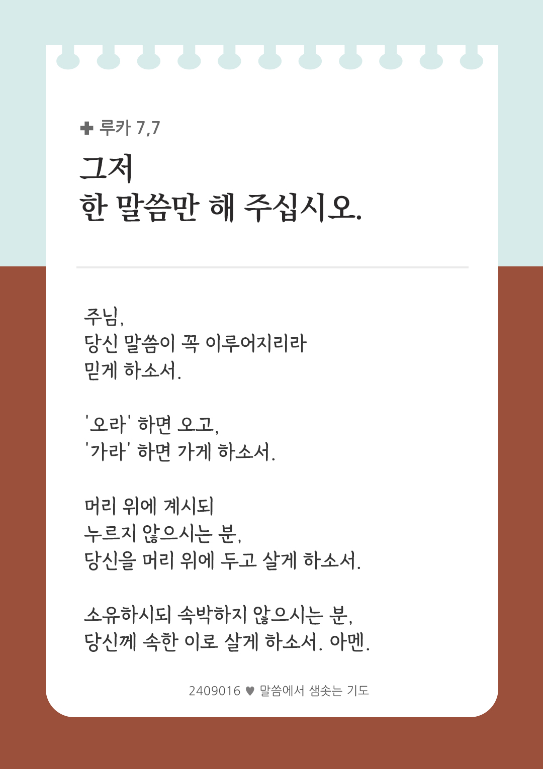 그저 한 말씀만 해 주십시오. (루카 7,7)
