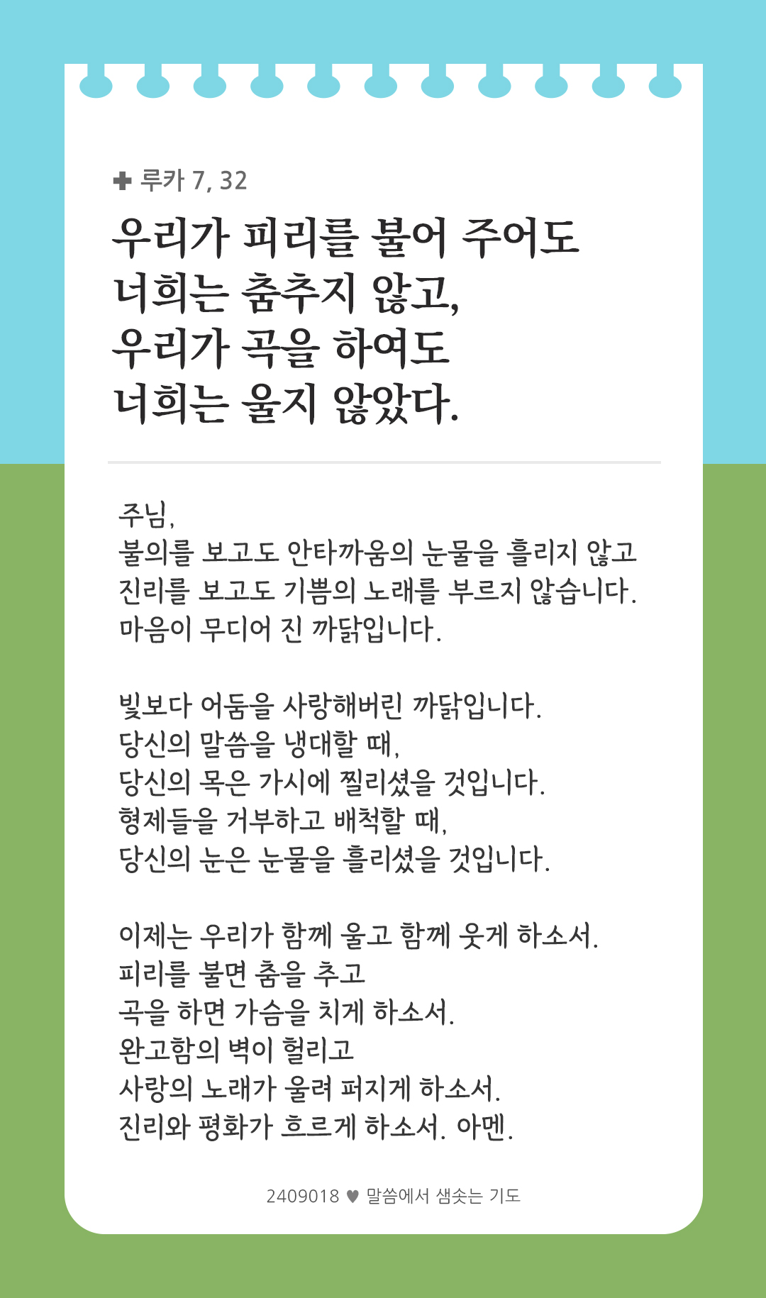 우리가 피리를 불어 주어도 너희는 춤추지 않고, 우리가 곡을 하여도 너희는 울지 않았다 (루카 7, 32)