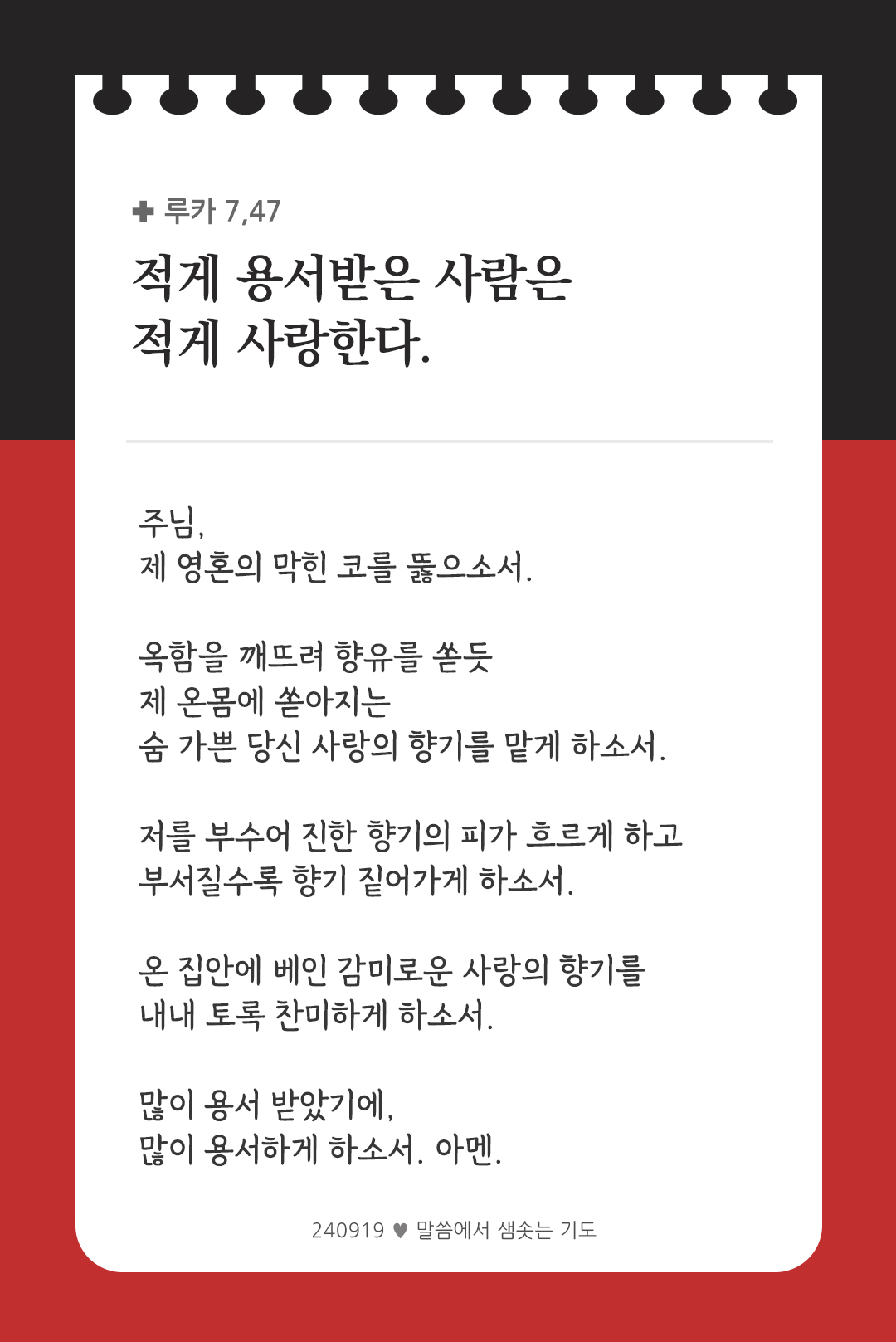 적게 용서받은 사람은 적게 사랑한다. (루카 7,47)