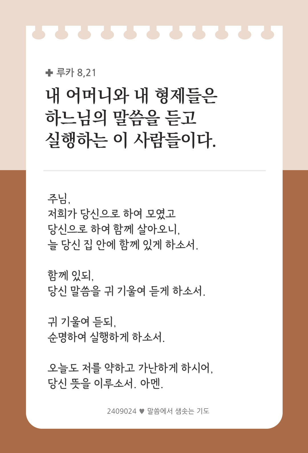 내 어머니와 내 형제들은 하느님의 말씀을 듣고 실행하는 이 사람들이다. (루카 8,21)
