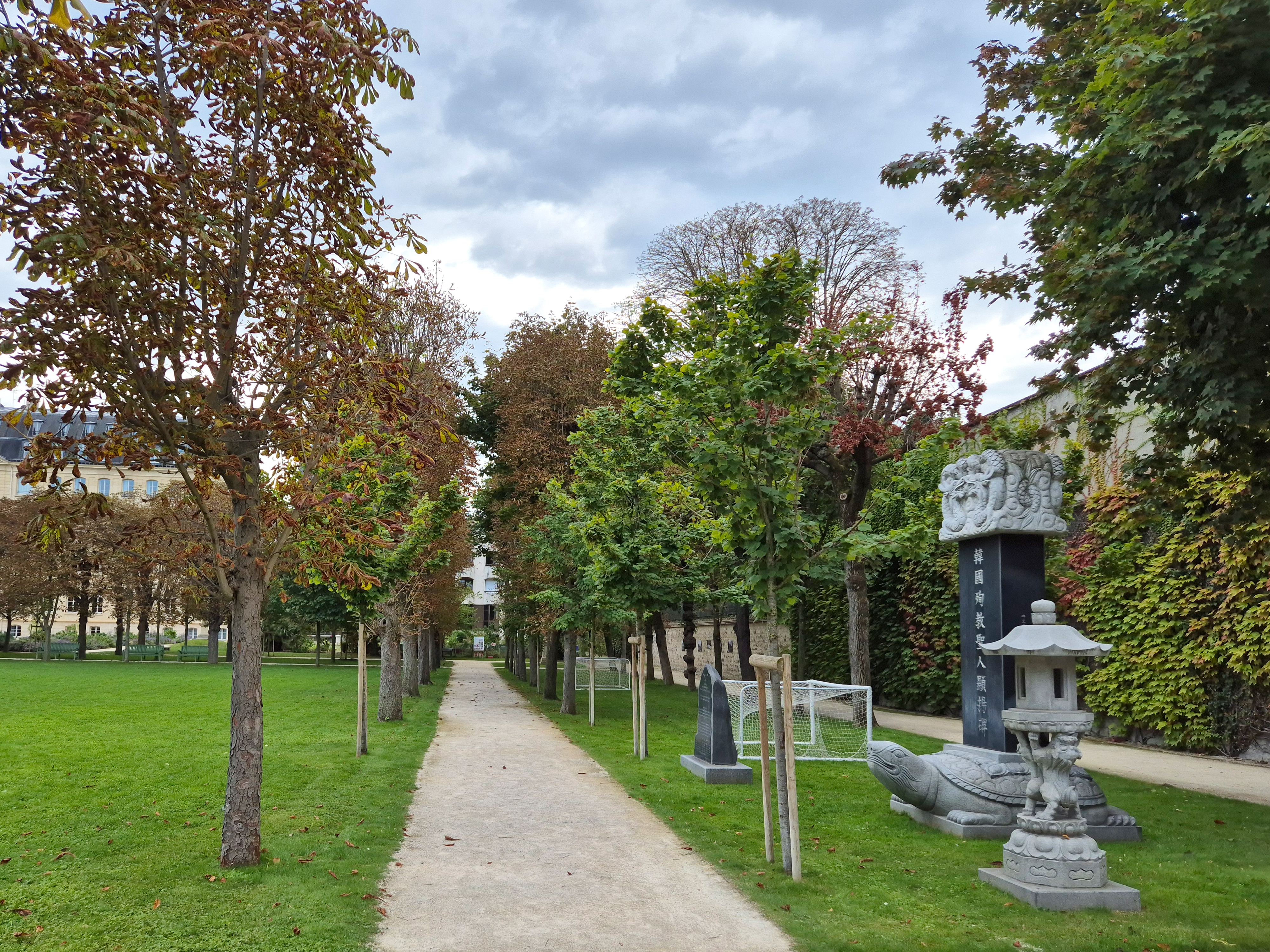 선교사들이 한국에서 겪었던 고난과 희생을 상징하기 위해 명동성당에서 기증한 순교자 현양비가 위치한 파리외방전교회 정원. - 무료 사진 해상도
