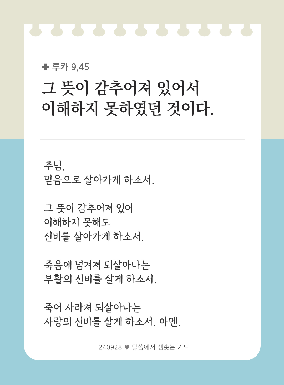 그 뜻이 감추어져 있어서 이해하지 못하였던 것이다. (루카 9,45)