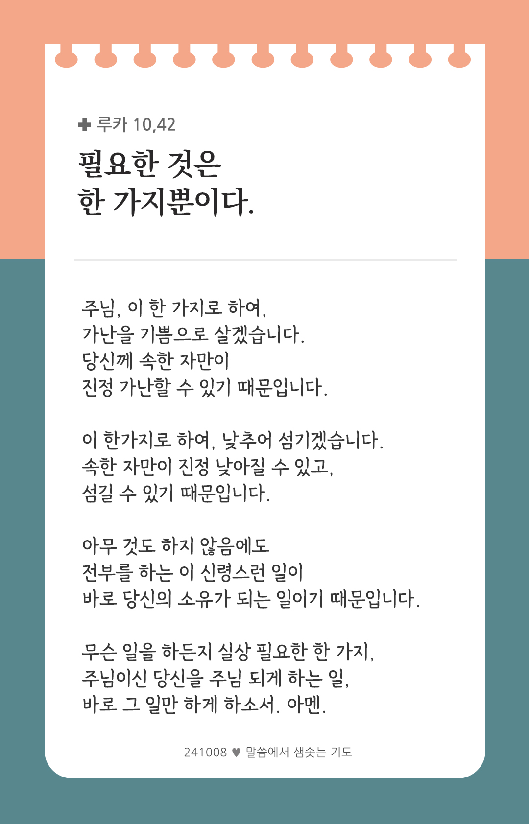 필요한 것은 한 가지뿐이다. (루카 10,42)