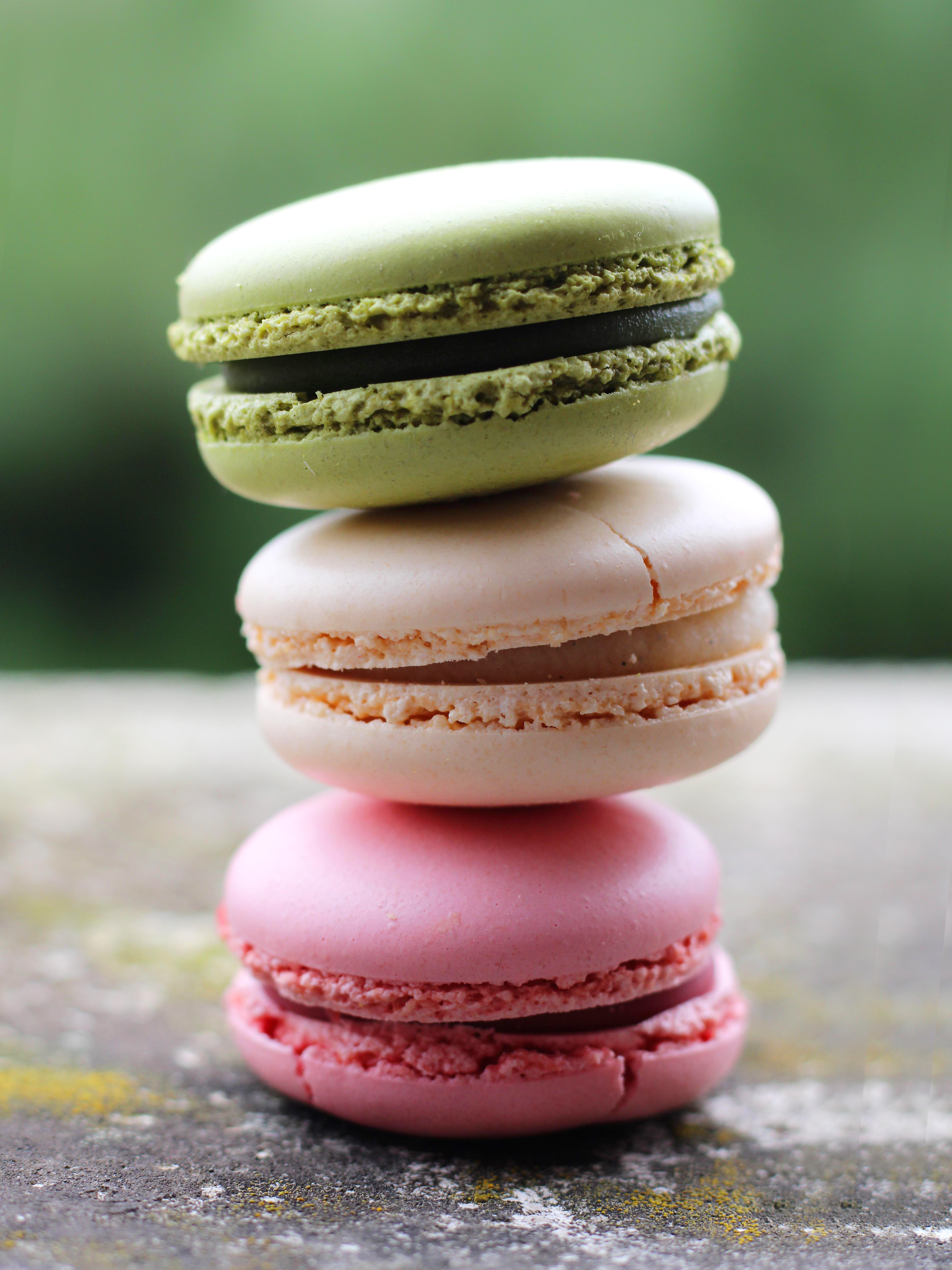 파리의 달콤한 유혹 라즈베리, 바닐라, 말차 마카롱 - 무료 사진 해상도