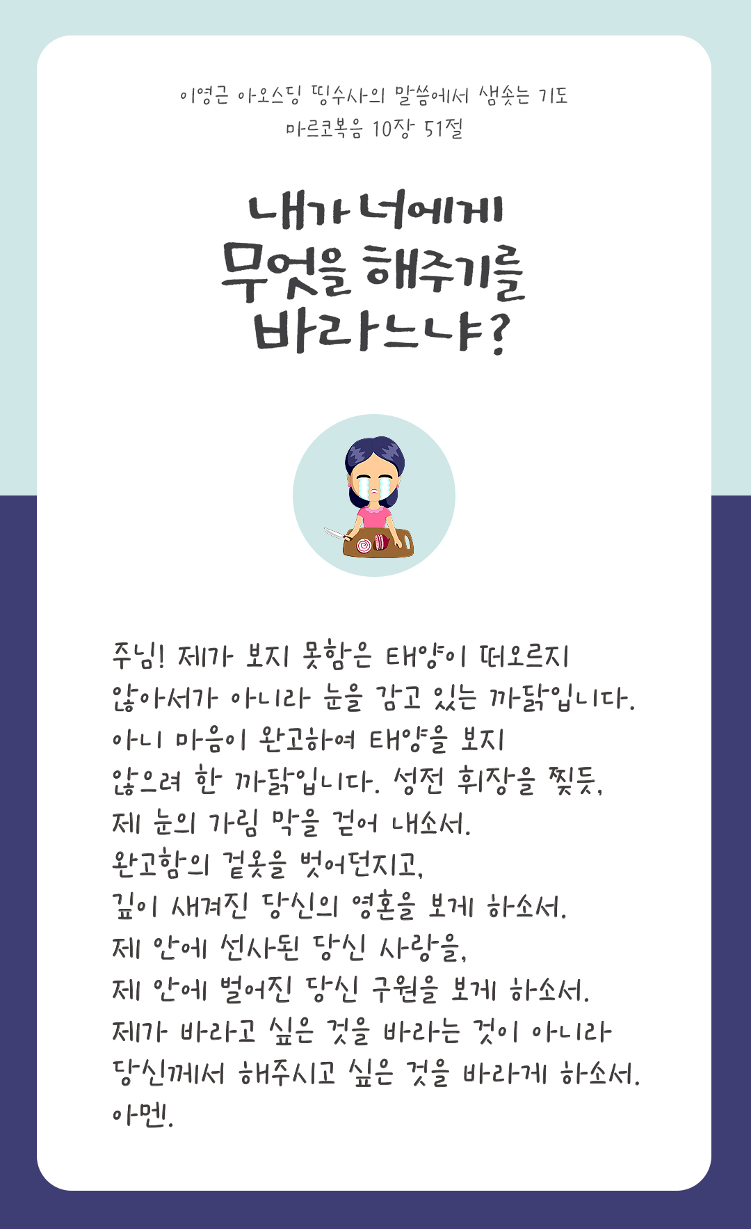 내가 너에게 무엇을 해 주기를 바라느냐? (마르 10,51)