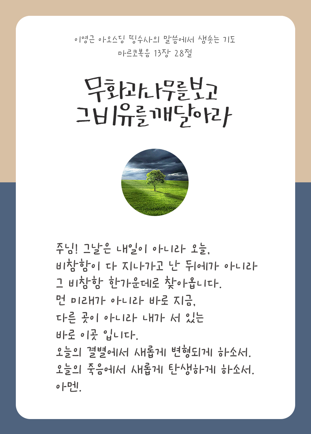 너희는 무화과나무를 보고 그 비유를 깨달아라. (마르 13,28)