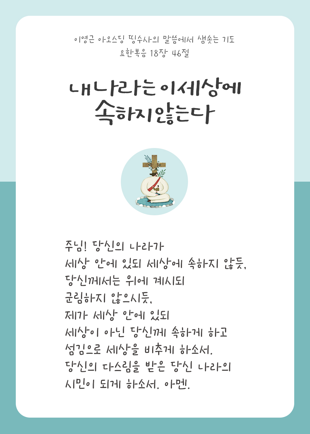 아버지, 지금 여기에서 당신의 목소리를 듣는 이들과 함께 이 세상에 속하지 않는 당신의 나라를 살아갈 수 있음에 감사합니다. - 바람과 햇살