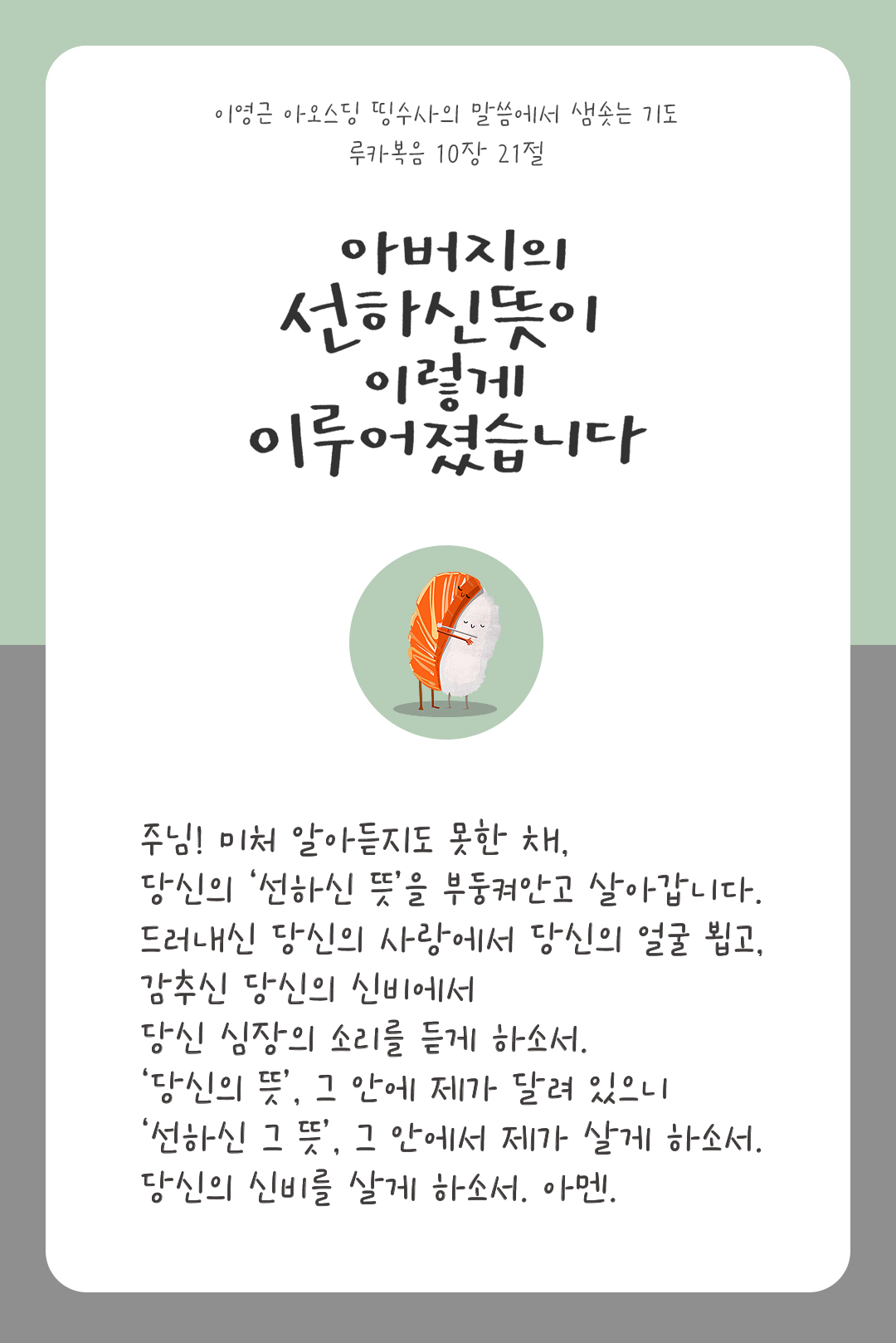 그렇습니다. 아버지! 아버지의 선하신 뜻이 이렇게 이루어졌습니다. (루카 10,21)