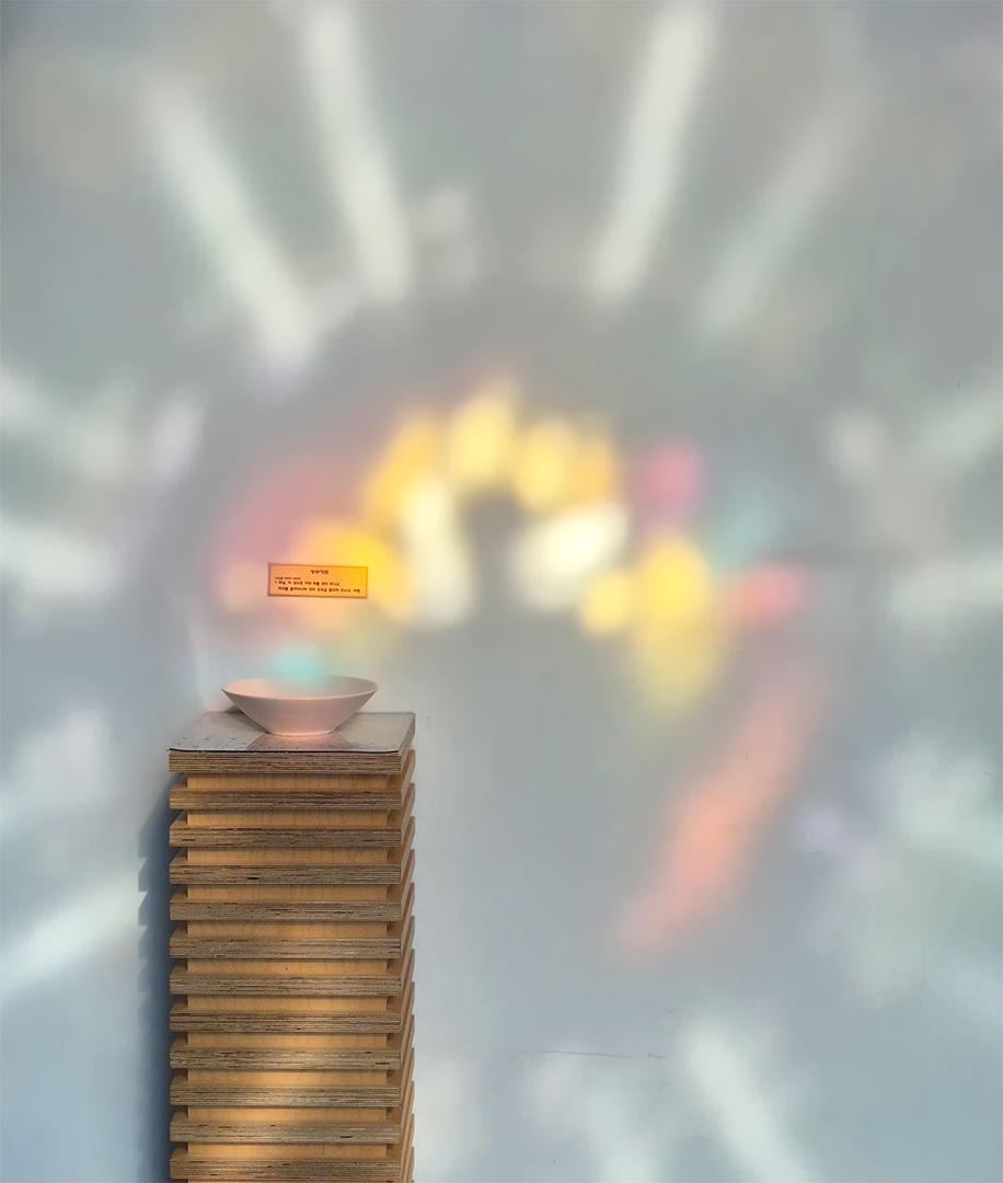 성당 대성전 입구 성수대에 비친 스테인드 글라스의 아름다운 반영 - 무료 사진 해상도