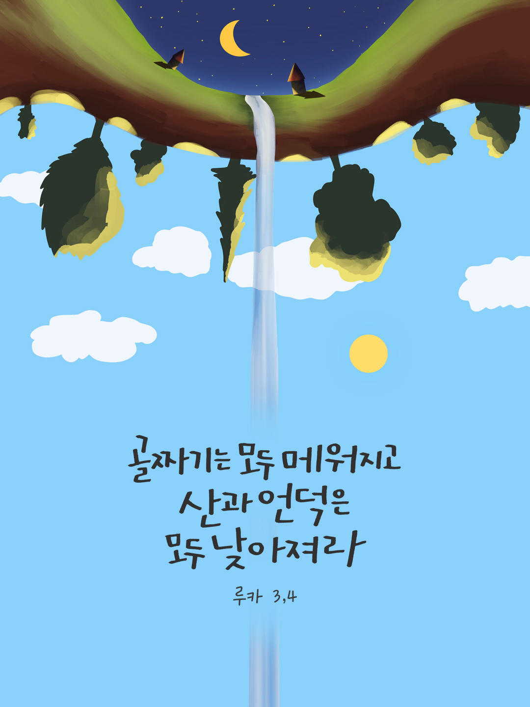 광야에서 외치는 이의 소리. '너희는 주님의 길을 마련하여라. 그분의 길을 곧게 내어라. 골짜기는 모두 메워지고 산과 언덕은 모두 낮아져라. 굽은 데는 곧아지고 거친 길은 평탄하게 되어라. 그리하여 모든 사람이 하느님의 구원을 보리라.' (루카 3,4-6)
