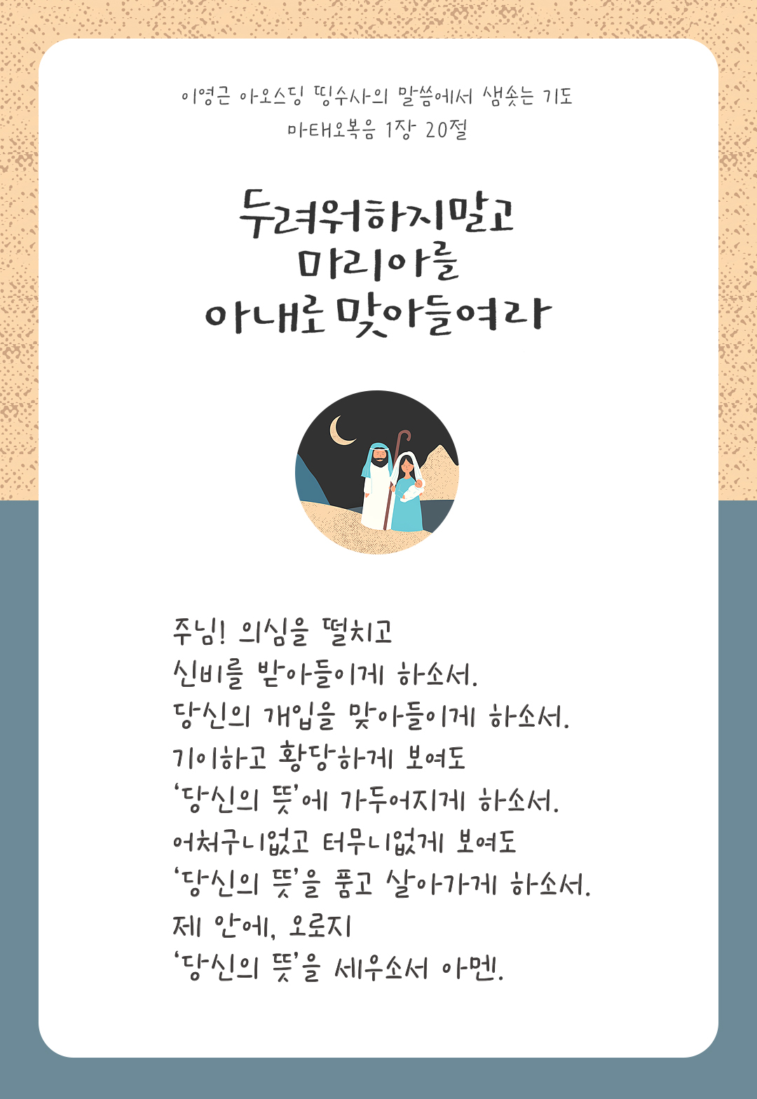 두려워하지 말고 마리아를 아내로 맞아들여라. (마태 1,20)