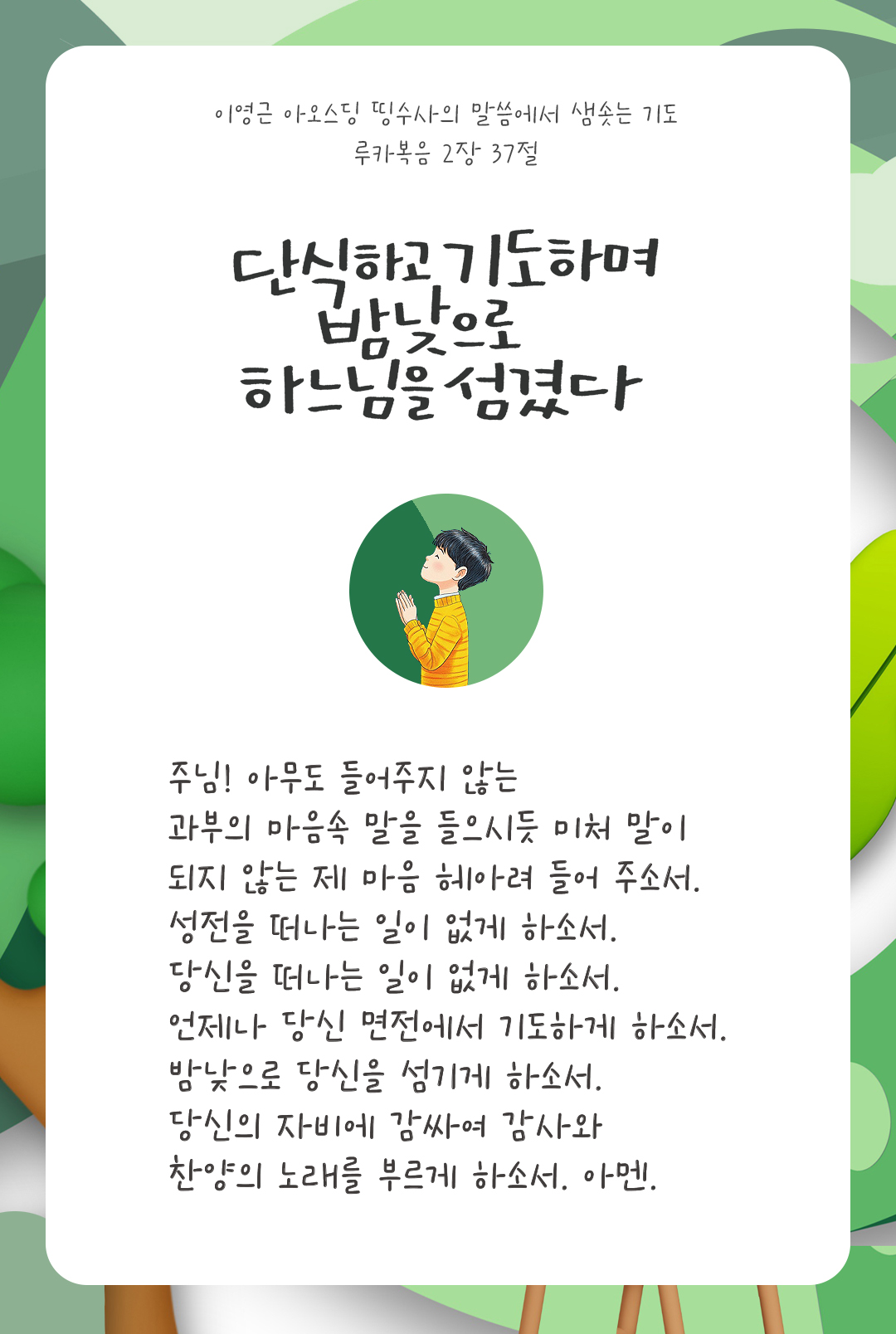 단식하고 기도하며 밤낮으로 하느님을 섬겼다. (루카 2,37)