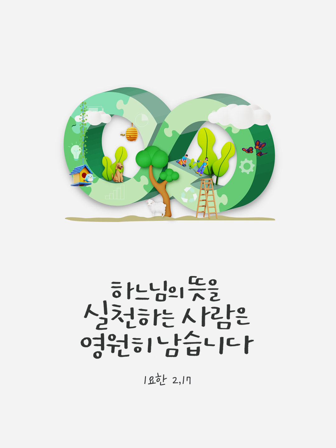 여러분은 세상도 또 세상 안에 있는 것들도 사랑하지 마십시오. 누가 세상을 사랑하면, 그 사람 안에는 아버지 사랑이 없습니다. 세상에 있는 모든 것, 곧 육의 욕망과 눈의 욕망과 살림살이에 대한 자만은 아버지에게서 온 것이 아니라 세상에서 온 것입니다. 세상은 지나가고 세상의 욕망도 지나갑니다. 그러나 하느님의 뜻을 실천하는 사람은 영원히 남습니다. (1요한 2,15-17)
