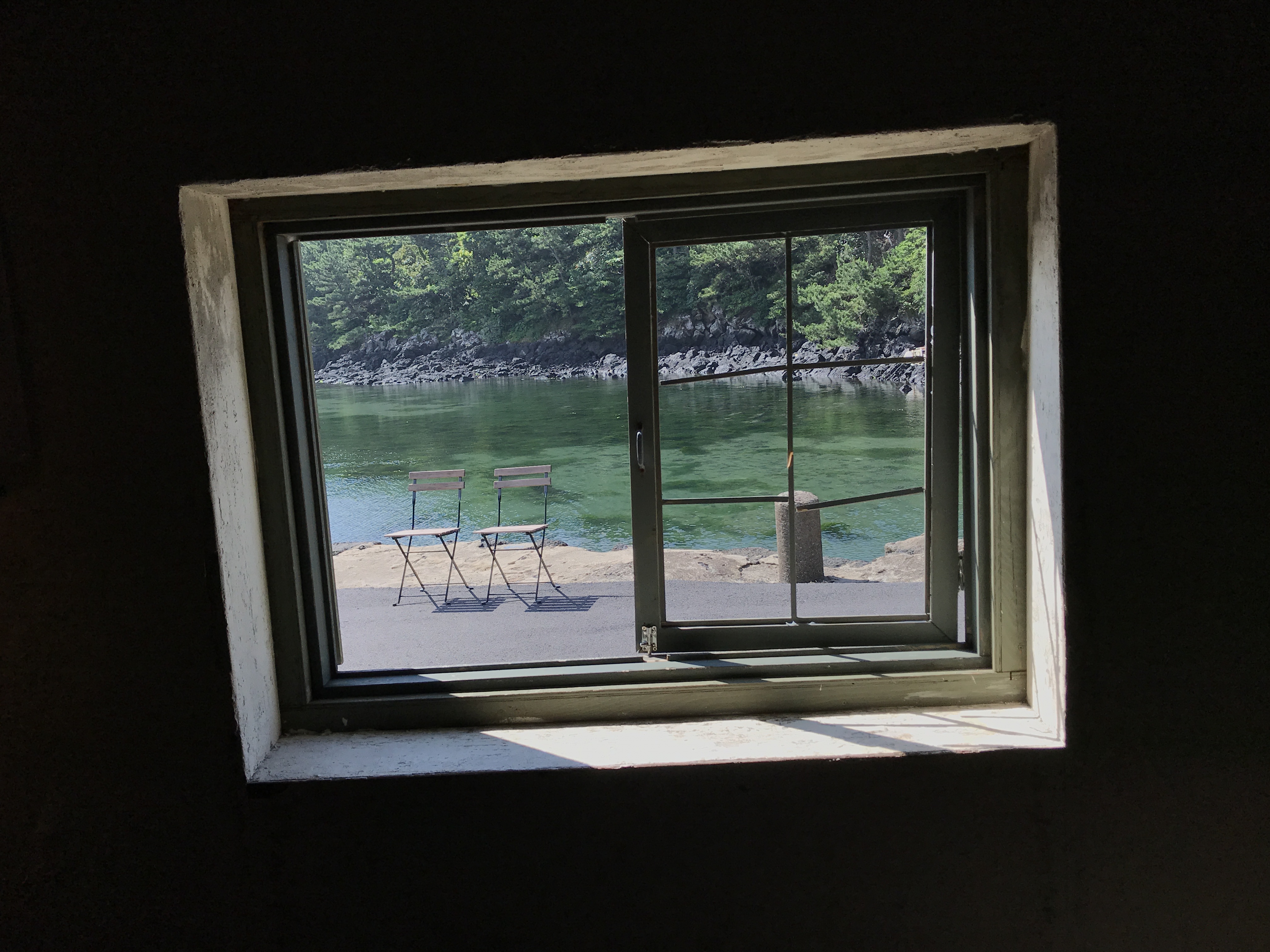 열린 창문 밖으로 의자가 보이는 풍경 이미지 - 무료 사진 해상도