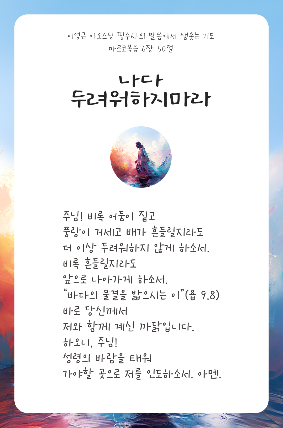 용기를 내어라. 나다. 두려워하지 마라. (마르 6,50)