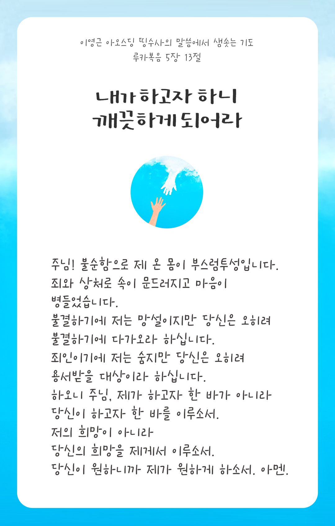 내가 하고자 하니 깨끗하게 되어라. (루카 5,13)