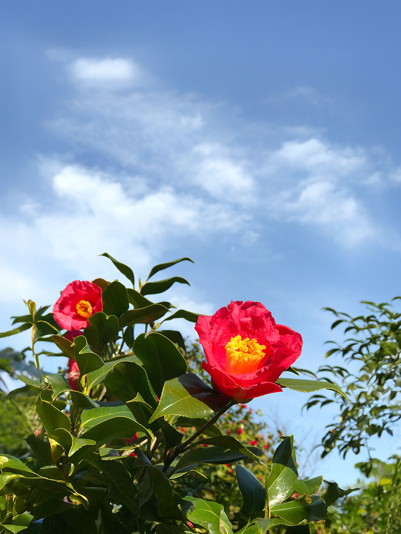 겨울의 찬바람이 거세게 불어오면 피어나는 동백꽃의 강인함은 언제나 감동적이에요. 만개한 동백꽃이 지는 모습도 볼 때마다 깊은 울림을 주고요.