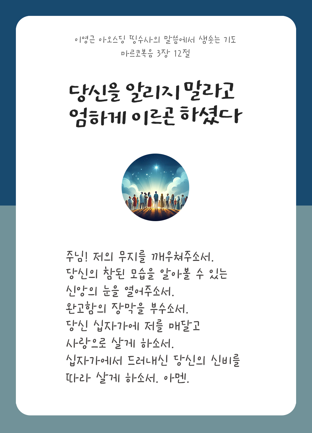 당신을 알리지 말라고 엄하게 이르곤 하셨다. (마르 3,12)