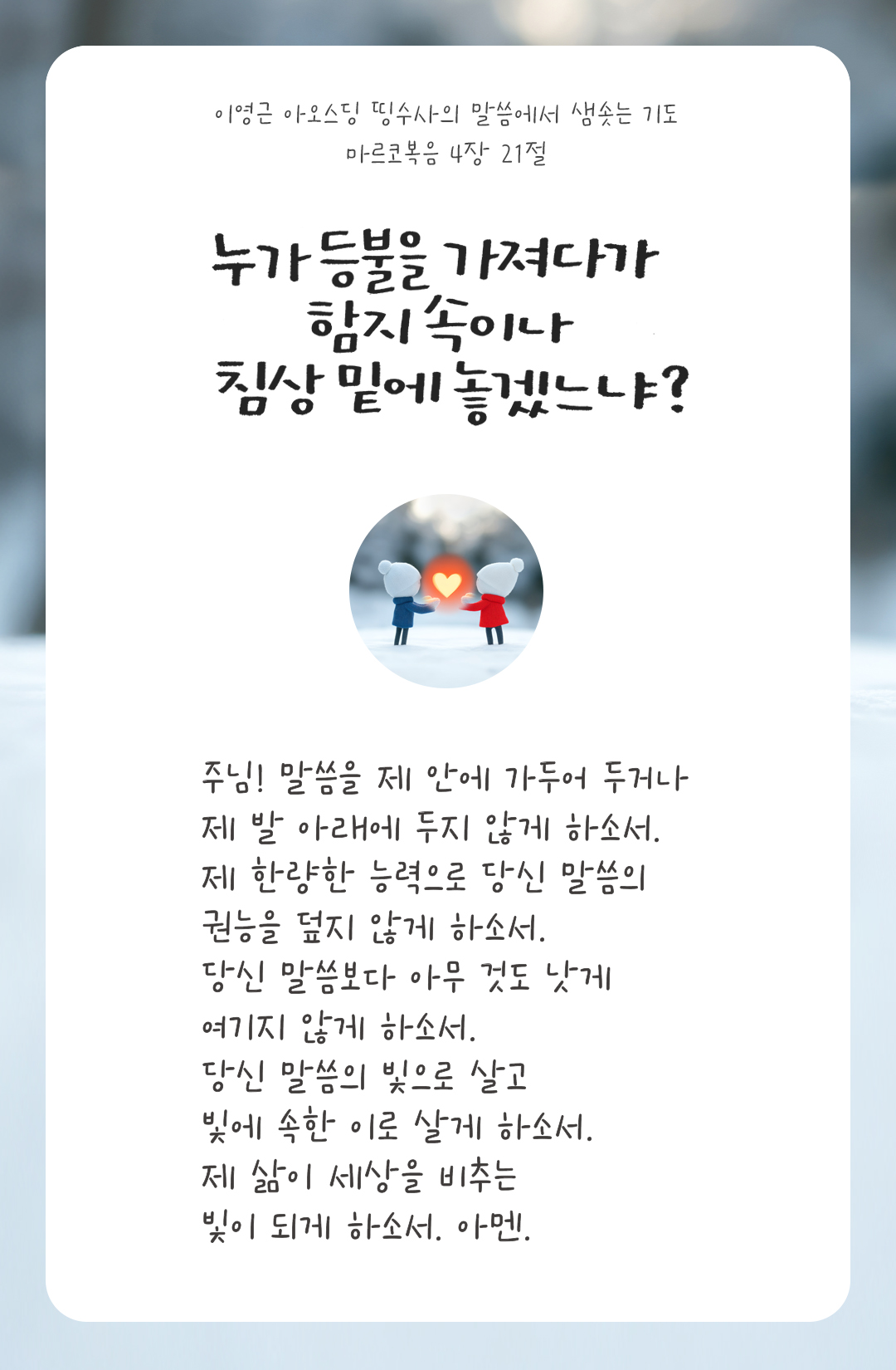 누가 등불을 가져다가 함지 속이나 침상 밑에 놓겠느냐? (마르 4,21)