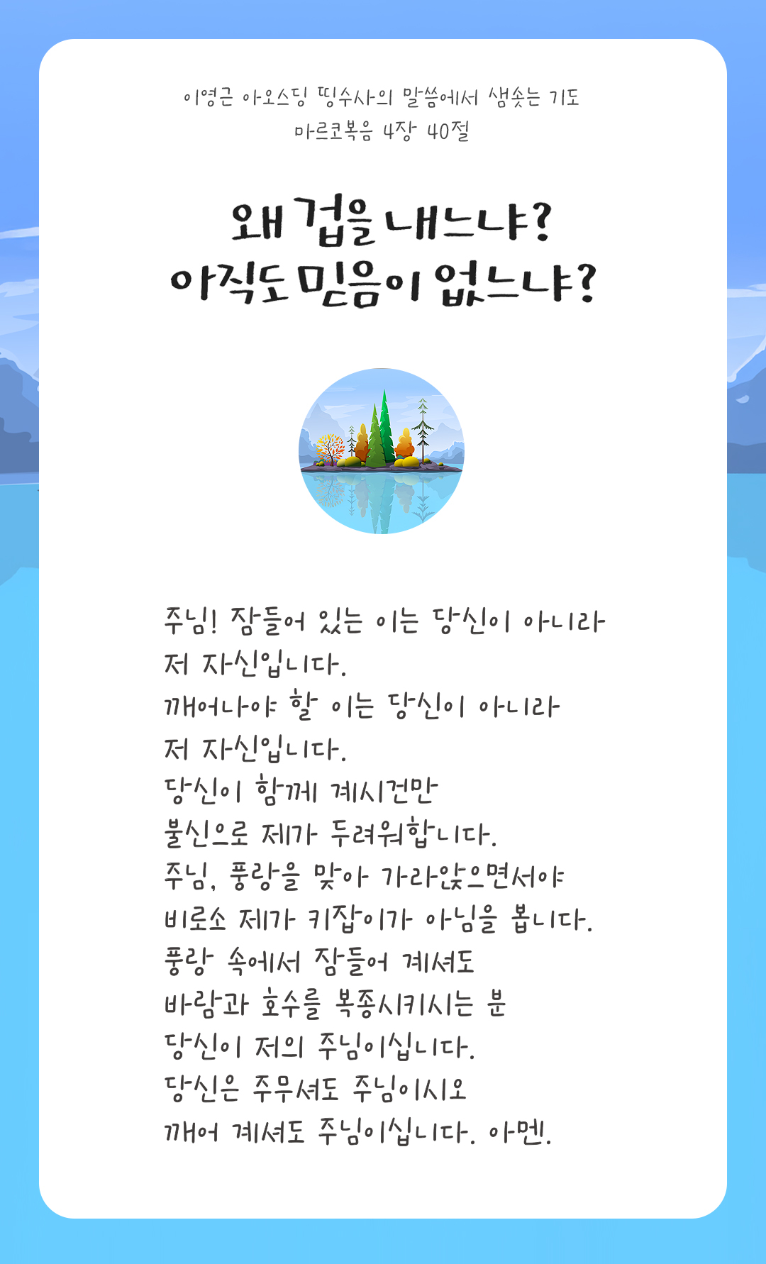 왜 겁을 내느냐? 아직도 믿음이 없느냐? (마르 4,40)