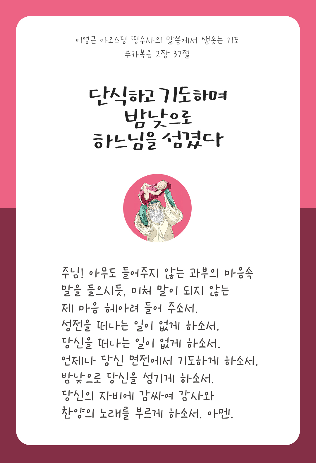 단식하고 기도하며 밤낮으로 하느님을 섬겼다. (루카 2,37)