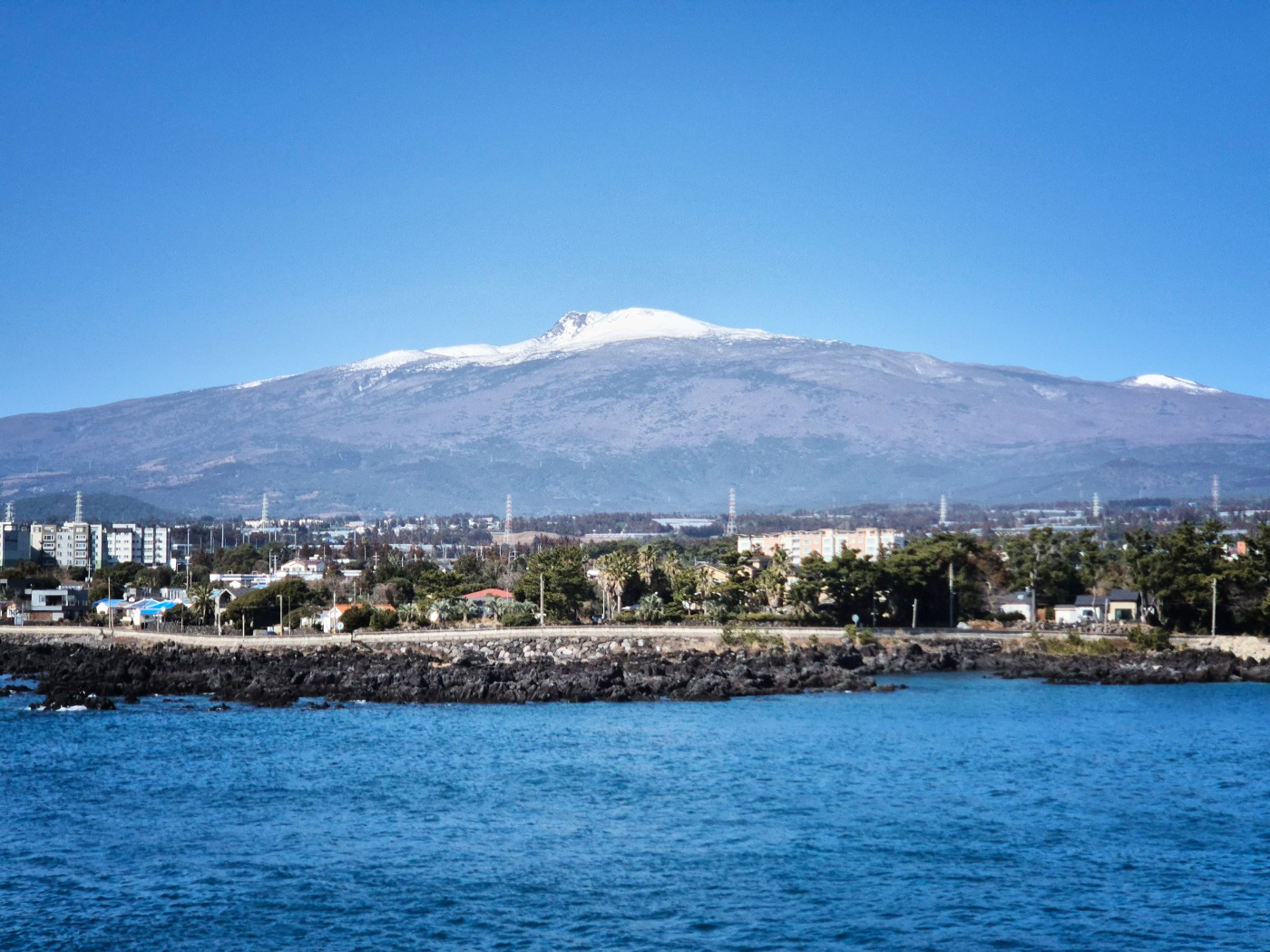 오랜만에 구름 한 점 없는 맑은 하늘에 모습을 드러낸 한라산에게 감사합니다.
