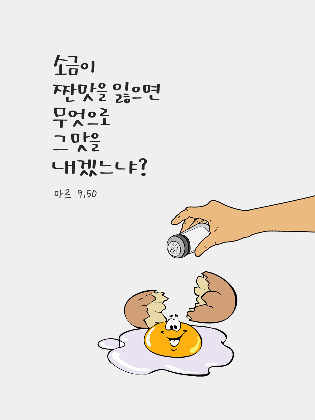 소금은 좋은 것이다. 그러나 소금이 짠맛을 잃으면 무엇으로 그 맛을 내겠느냐? 너희는 마음에 소금을 간직하고 서로 평화롭게 지내라. (마르 9,50)