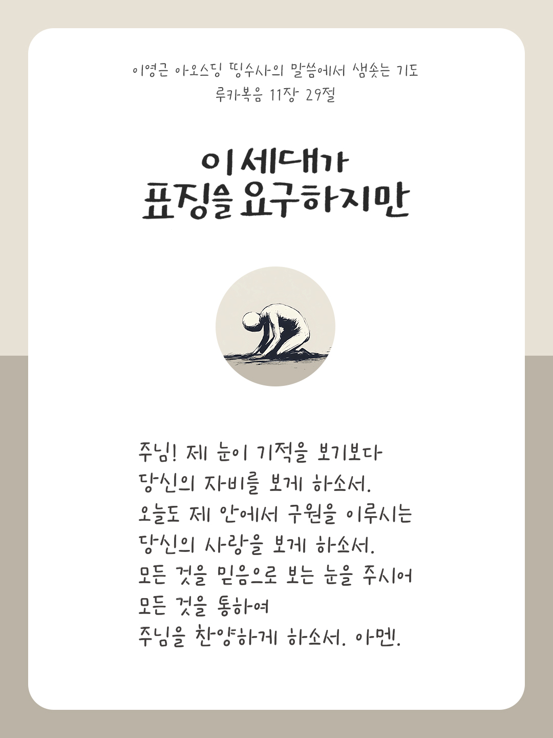 이 세대가 표징을 요구하지만 요나 예언자의 표징밖에는 어떠한 표징도 받지 못할 것이다. (루카 11,29)